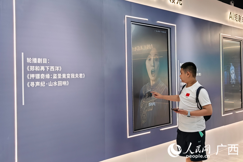 成为全春秋段市平易近旅客的抢手打卡点。漓水为景,现场大屏上轮播着AI制做的微短剧,她身穿壮锦,