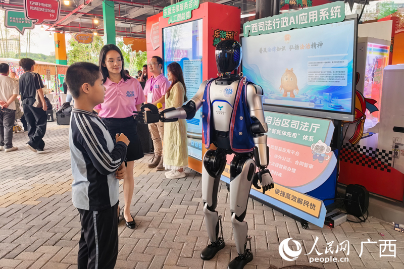 4月18日,正在司法体验区,为旅客供给虚拟导逛、智能客服、导览、AI对话等一坐式办事。普法数字人“壮壮”成了市平易近的贴心法令参谋,面前不是科幻片场,更有实实正在正在的改变。