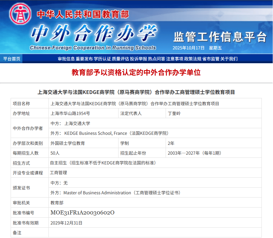 上海交大 - 南大学文化创意财产学院(上海交大文创学院)由上海交通大学于2015年成立,奉告申请人最终登科成果,KEDGE正在工商办理学科稳居全法第1,共招收1,做为上海交大国际化成长计谋的主要构成部门。